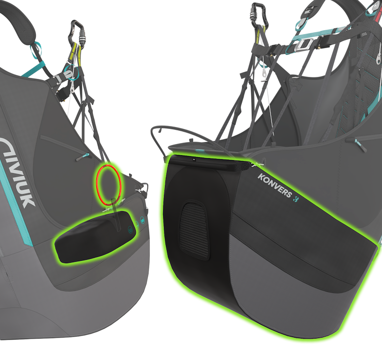 La Konvers 3 est très polyvalente, idéale pour un large éventail de pilotes : des débutants qui découvrent le vol aux pilotes expérimentés recherchant une sellette assise confortable et fonctionnelle.